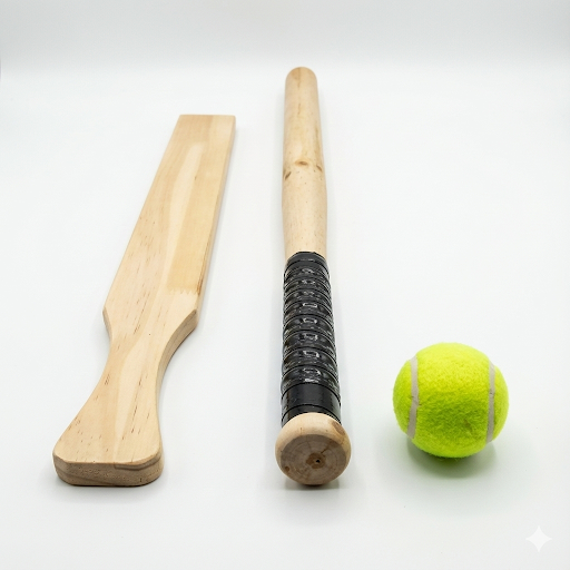 Indhold: 2 træbats + 1 bold,
